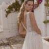 Dieses elegante Hochzeitskleid hat einen tiefen V-Ausschnitt und ist mit einer wunderschönen und einzigartigen Perlenstickerei im Blattmotiv verziert.