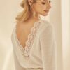 Brautpullover mit V-Ausschnitt am Rücken und Spitzendetails.