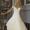 Ein schulterfreies Ballkleid mit romantischem Spitzenoberteil mit herzförmigem Ausschnitt. Ein wunderschöner großer Tüllrock mit Spitzenverzierungen verleiht diesem Brautkleid ein echtes Prinzessin-Feeling