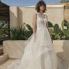Wunderschönes Brautkleid mit floraler Spitze und einem Volant Rock.
