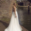 Besondere transparente, symmetrische Spitze mit einem tollen Rückenausschnitt und zarten Tüllrock.