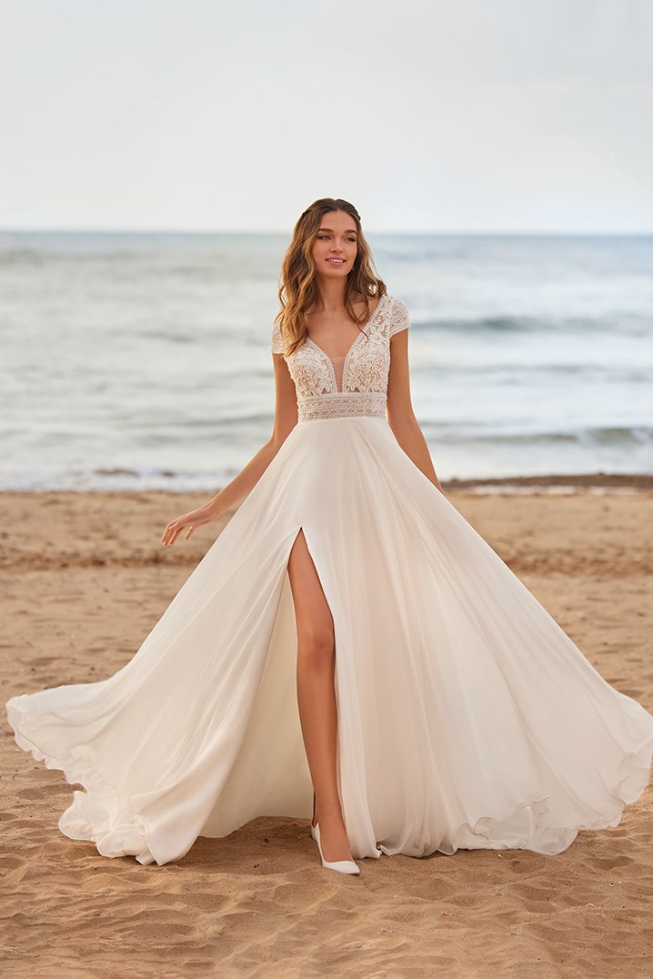 Luftiges Chiffonbrautkleid mit besonderem Rücken.