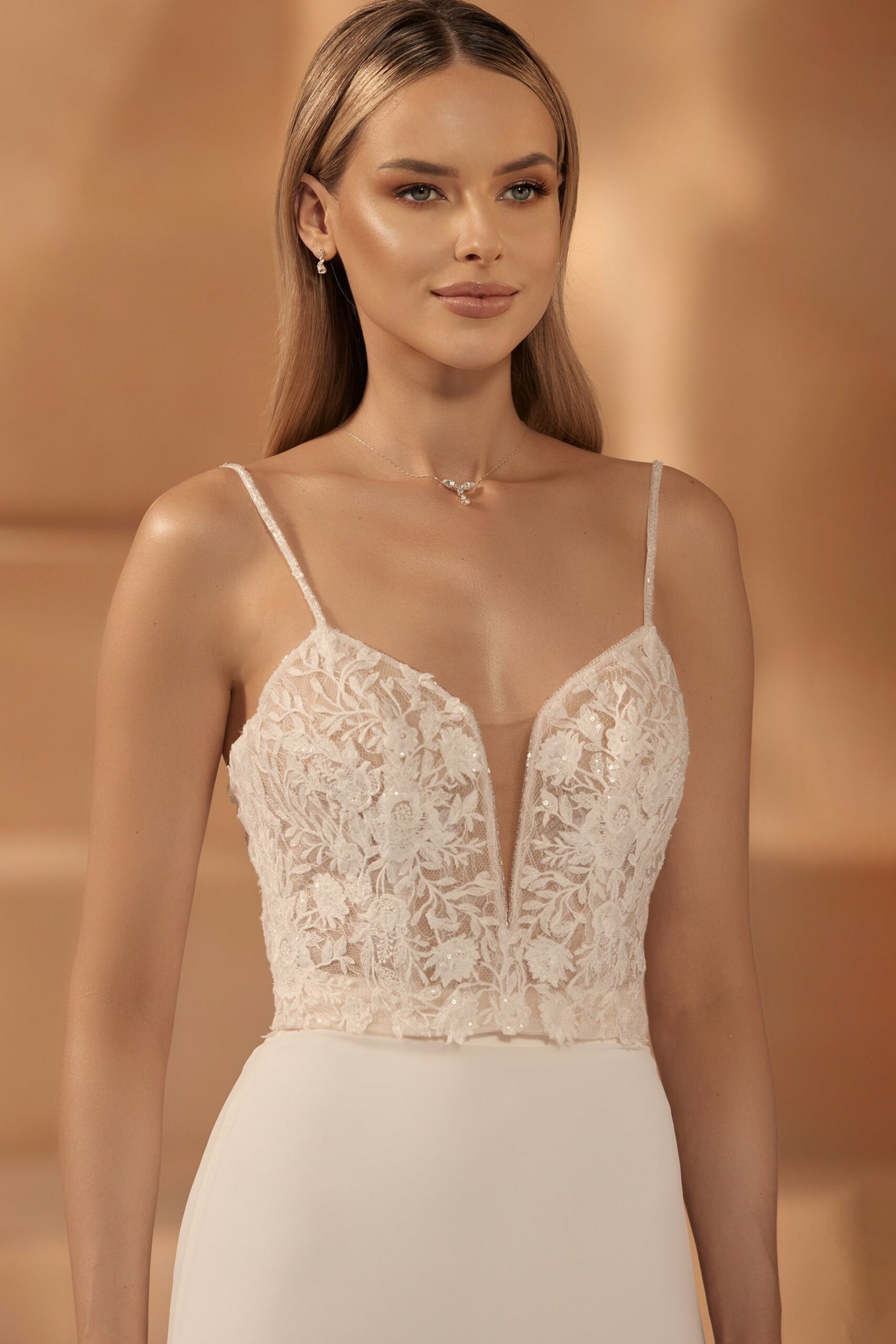 Brauttop mit Spitze und Spaghetti Trägern
