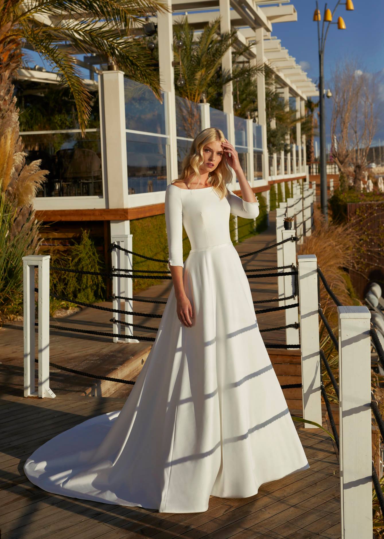 Klassische Eleganz wie aus den Königshäusern Europas. Uboot Ausschnitt mit halblangen Ärmeln.