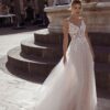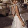 Wunderschöne zarte A-Linie mit auslaufender Spitze, wer möchte kann mit den Schleifen auf den Schultern ein Fashion Statement setzen.